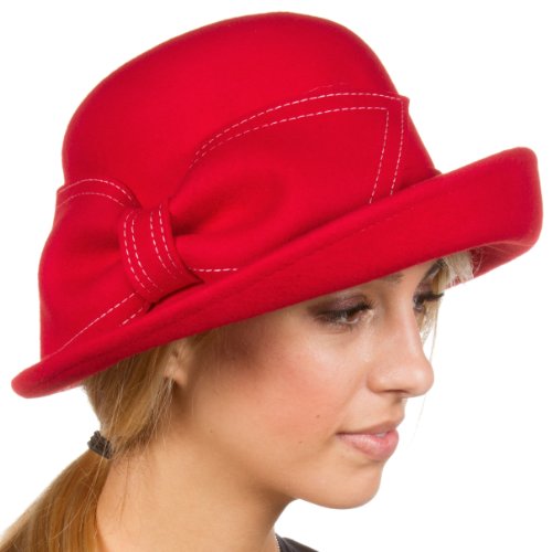 Sakkas 32CY Bobbi Chapeau Laine Derby Cloche Style Rétro - Rouge - Taille Unique