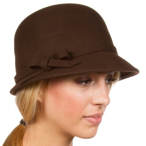 Sakkas EH0621LC - Chapeau Hiver Cloche Laine Femmes Style Rétro avec Accent Nœud (4 Couleurs) - Chocolat/Taille Unique